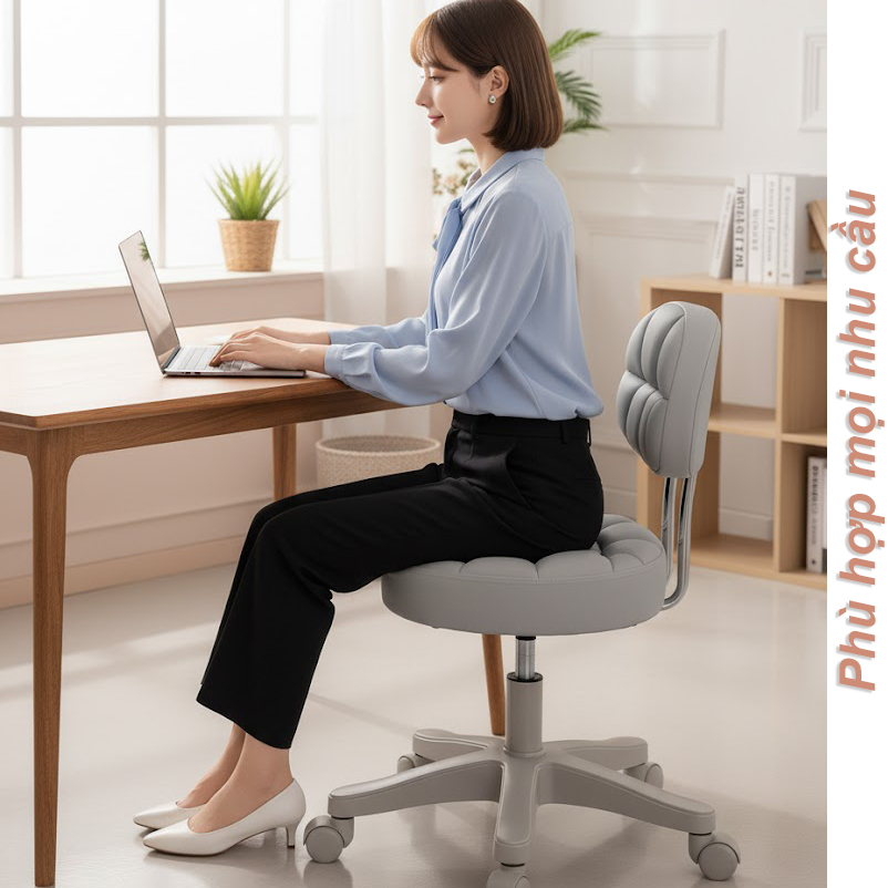 GHẾ XOAY ĐỆM DA CAO CẤP - THOẢI MÁI & SANG TRỌNG 🔥 Tìm kiếm một chiếc ghế vừa êm ái vừa đa năng? Chiếc ghế xoay đệm da có tựa lưng và bánh xe này chính là lựa chọn hoàn hảo! Thiết kế trẻ trung, hiện đại với đệm ngồi tròn và tựa lưng bọc da PU cao cấp, tạo hình múi tinh tế, mang lại cảm giác thư giãn tuyệt đối và dễ dàng vệ sinh. Tính năng vượt trội: