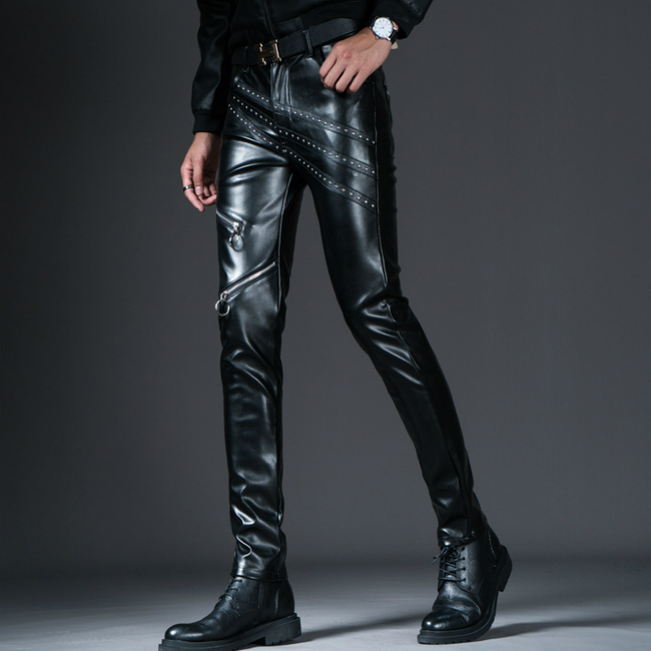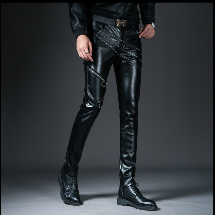 quần dài da đính hạt dây kéo