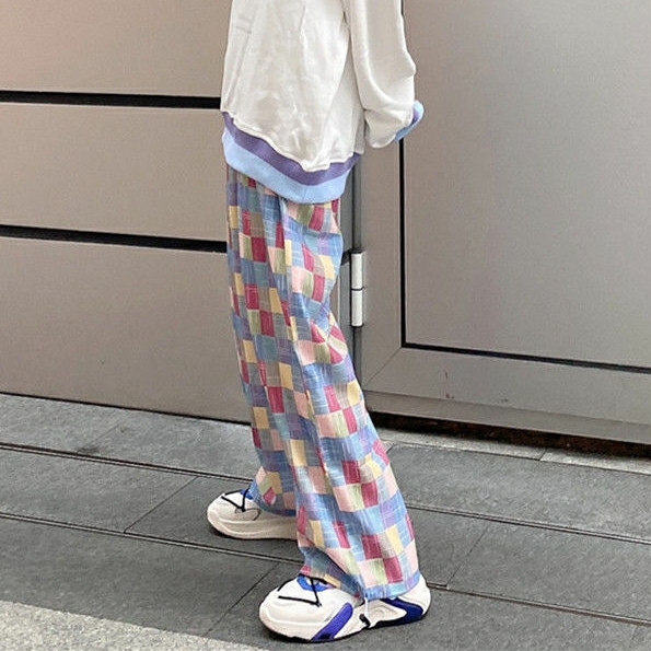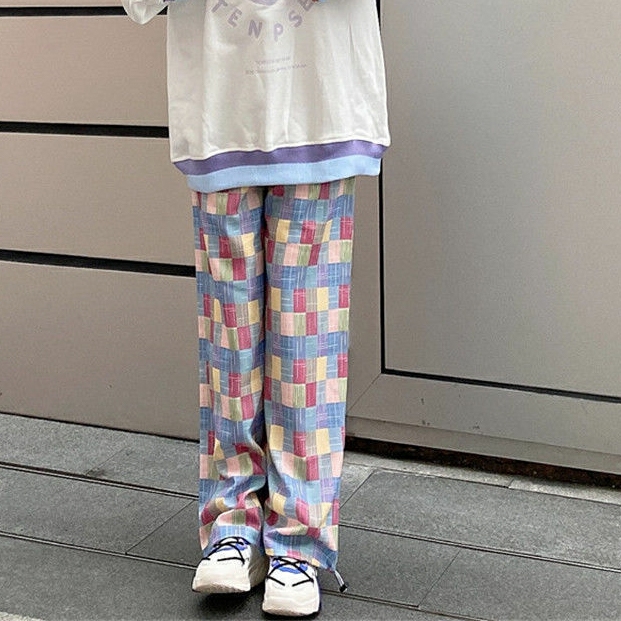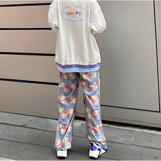 Quân unisex ống suông caro màu